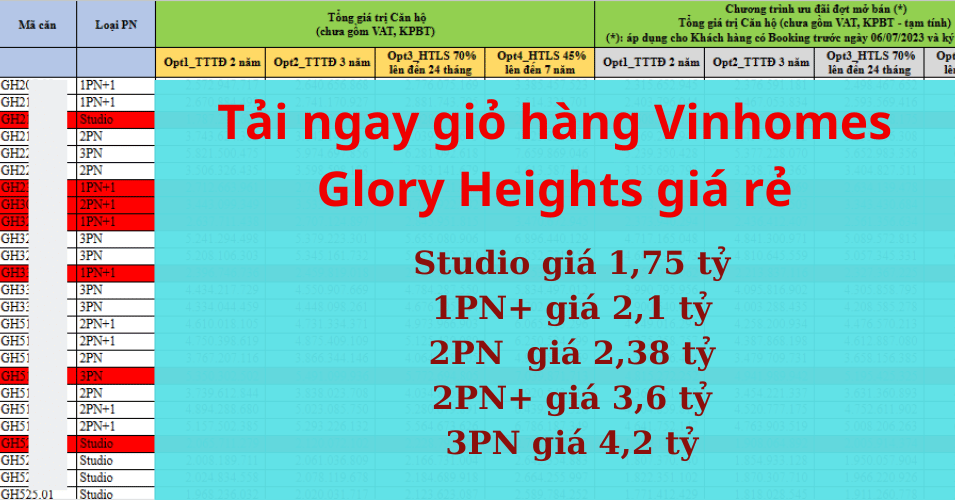 Tải bảng giá chi tiết từng căn và cập nhật giỏ hàng các căn đang còn chưa bán